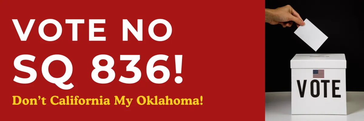 Join the effort to build a public awareness campaign around the dangers of SQ 836 and how it will destroy Oklahoma's conservative.values!
