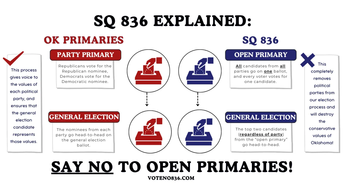 State Question 836 undermines the Republican Party's ability to select candidates who reflect the principles that have guided Oklahoma for generations.